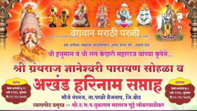 केशव मुंडे वेगवान मराठी परळी वैजनाथ (प्रतिनिधी- 11/12/24) येथून जवळच असलेल्या मौजे नंदनज येथे उद्या पासून अखंड हरिनाम सप्ताह प्रारंभ…