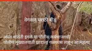 बीड शहरातील नगर रोडवरील पोलीस वसाहतीतील राहत असलेले पोलीस शिपाई अनंत मारोती इंगळे मु कळंमआंबा ता. केज जि बीड यांनी राहत्या घराच्या बाजूस झाडाला गळफास लाउण आत्महत्या केली आहे